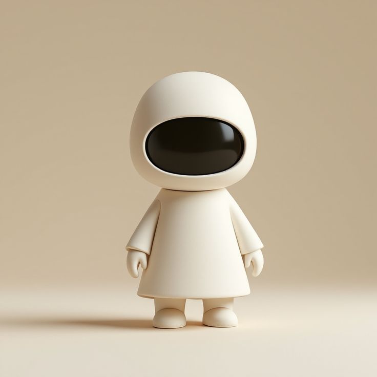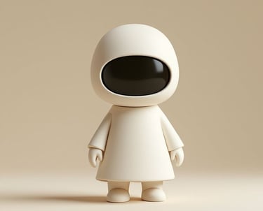 Un personaje en 3D de líneas limpias y formas suaves, modelado en blanco puro para destacar su diseño minimalista y atemporal. Cada curva y ángulo está cuidadosamente trabajado para crear un equilibrio entre simplicidad y expresión, evocando elegancia y versatilidad. Las sombras sutiles y los reflejos de luz añaden profundidad, dando vida al personaje sin necesidad de adornos.
