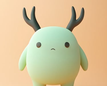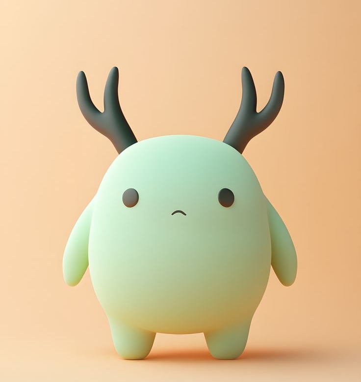 Esta imagen presenta un adorable muñequito estilizado con pequeños cuernos, creado con un diseño 3D que mezcla ternura y un toque de fantasía. La escena incluye una expresión juguetona o misteriosa, resaltando detalles como texturas suaves y colores vibrantes. El estilo artístico recuerda a personajes de animación, con un equilibrio entre lo caricaturesco y lo mágico, ideal para ilustrar cuentos o proyectos creativos.