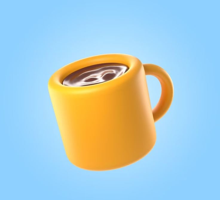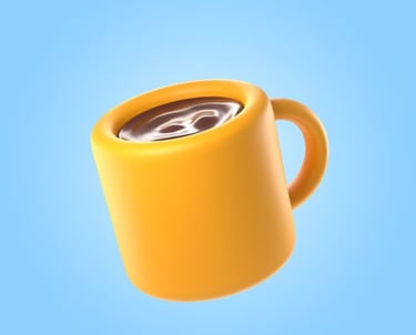 Una escena surrealista y acogedora donde una taza amarilla brillante flota en el aire, llena de café humeante que parece desafiar la gravedad. La taza, con un diseño minimalista pero vibrante, irradia calidez, mientras el café se mantiene en perfecto equilibrio, casi como un momento congelado en el tiempo. El fondo podría ser neutro o abstracto, resaltando el contraste entre lo cotidiano y lo mágico. Ideal para representar ideas de tranquilidad, creatividad o pequeños placeres inesperados.